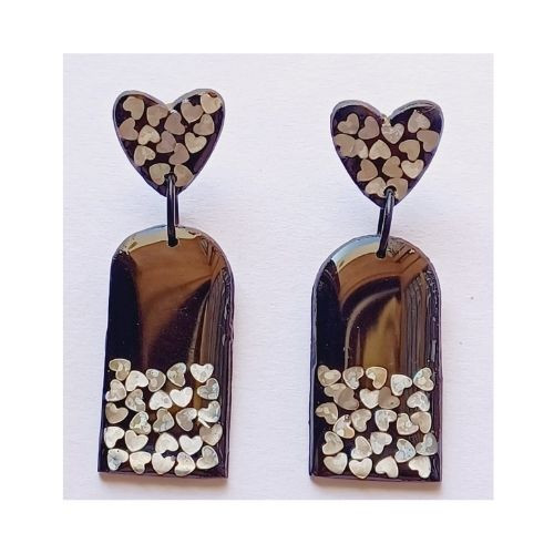 Handmade black and silver heart earrings.